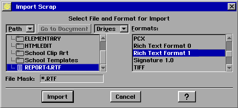 the New/Open dialog box. In NewDraw or Scrapbook, choose Import