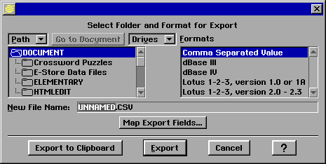 Lotus 123 or dBase format instead of Comma Separate Value format.