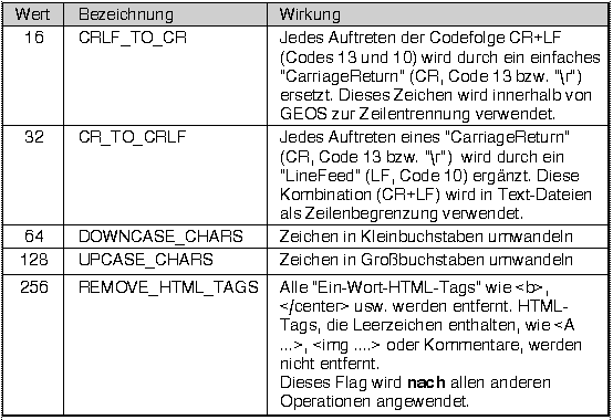 | HTML-Text in GEOS-Zeichensatz konvertieren, DOS-Zeilenumbruch (CR+LF), und durch GEOS-Zeilenumbruch (CR) ersetzen: |
