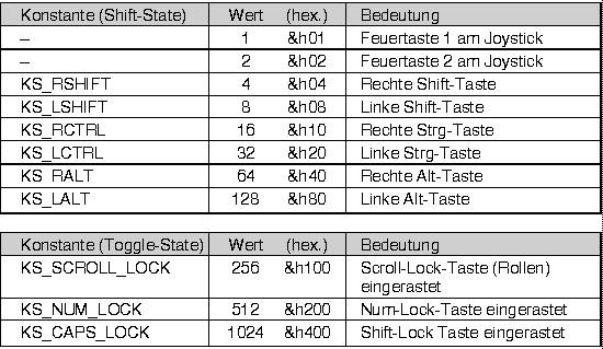 Tabellen: Bedeutung der Bits, die von GetKeyState geliefert werden