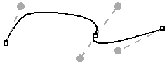PolygonPolygon zeichnet einen geschlossenen Linienzug aus mehreren Geraden in der aktuellen Vordergrundfarbe.Syntax: Polygon <pl> <pl>: Variable oder Ausdruck vom Typ PointList Erläuterungen zur Struktur <pl>: Siehe PolyLine. Für ein Beispiel siehe Datei: R-BASIC\Beispiele\Grafik\Polygon Demo FillPolygonFillPolygon zeichnet einen gefüllten, geschlossenen Linienzug aus mehreren Geraden in der aktuellen Vordergrundfarbe.Syntax: FillPolygon <pl> <pl>:Variable oder Ausdruck vom Typ PointList Erläuterungen zur Struktur <pl>: Siehe PolyLine Für ein Beispiel siehe Datei: R-BASIC\Beispiele\Grafik\Polygon Demo SplineSpline zeichnet einen glatten Linienzug durch die gegebenen Punkte in der aktuellen Vordergrundfarbe.Syntax: Spline <pl> <pl>: Variable oder Ausdruck vom Typ PointList Erläuterungen zur Struktur <pl>: Siehe PolyLine Für ein Beispiel siehe Datei: R-BASIC\Beispiele\Grafik\Polygon Demo ClosedSplineClosedSpline zeichnet einen geschlossenen glatten Linienzug durch die gegebenen Punkte in der aktuellen Vordergrundfarbe.Syntax: ClosedSpline <pl> <pl>: Variable oder Ausdruck vom Typ PointList Erläuterungen zur Struktur <pl>: Siehe PolyLine Für ein Beispiel siehe Datei: R-BASIC\Beispiele\Grafik\Polygon Demo BezierSplineAchtung! BezierSpline ist eine Anweisung für fortgeschrittene Programmierer!Syntax: BezierSpline <pl> <pl>: Variable oder Ausdruck vom Typ PointList BezierSpline zeichnet einen Linienzug durch die gegebenen Punkte in der aktuellen Vordergrundfarbe, wobei die einzelnen Segmente durch ihren Anfangs- und Endpunkt sowie durch 2 Kontrollpunkte beschrieben werden. In den folgenden Bildern sind die Kurvenpunkte durch Vierecke, die Kontrollpunkte durch graue Kreise markiert. Beide dienen der Illustration, sie werden nicht mit gezeichnet. Ein einzelnes Kurvensegment, bestehend aus 2 Kurvenpunkten und 2 Kontrollpunkten. Für diese Figur müssen 4 Punkt an BezierSpline übergeben werden.